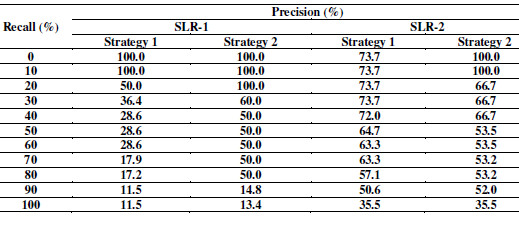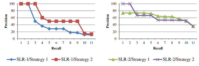 Figure 12: Recall versus Precision SLR-1 and SLR-2 – Strategy 1 and Strategy 2