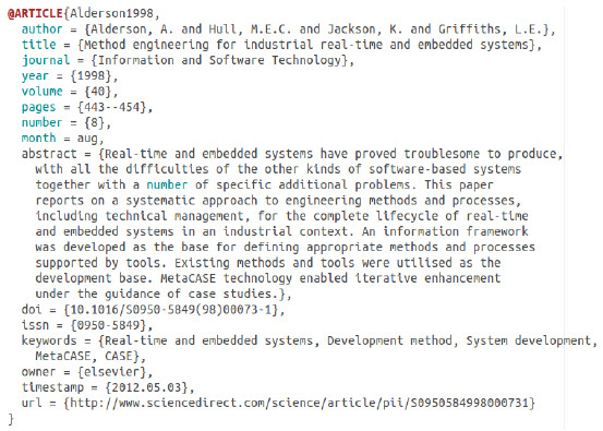 Additionally to those drawbacks, some references are exported with incomplete data, e.g., abstract and keywords. We executed the SLR-1 search string in the ACM Digital Library and selected a reference. The reference data (e.g., title, authors, abstract and keywords) were presented in the screen, but when we exported the reference, the abstract was not exported. The absence of any information can affect the ranking because fewer terms are indexed, which can result in a lower ranking.