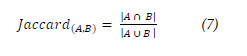 The Jaccard Coefficient Similarity (7) is a function based on words (tokens) used to quantify the similarity and diversity between sets of strings [14]. It is the result of the intersection divided by the result of the union of the sets of evaluated strings.