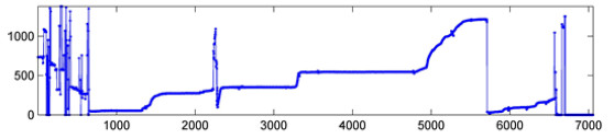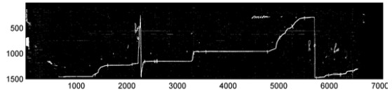 A sample output of the algorithm is shown in Figure 11. The resulting image is not longer a set of pixels, but a graphic of height values for the vertical position of the pluviometer head in each time point, which allows the researcher to reconstruct the time series of the rain records.