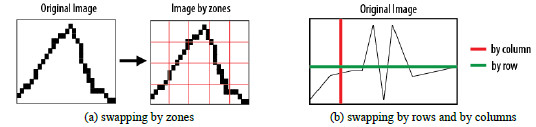 Several strategies were applied to process the image information, including swapping the image by zones, by rows, and by columns (and using information from neighboring columns). These strategies are schematically presented in Figure 13. Swapping by columns and using information from nearby columns allowed obtaining the best results, as these technique is more useful to process regions with discontinuities and breaks in the ink line (see the full details in our conference paper [10]).