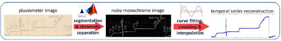 In order to make the climate information applicable for a proper use on nowadays systems, a transcription process of the historical records is needed. In some cases, climate records have information stored in natural language or handwritten numbers, and optical character recognition (OCR) techniques are needed when recovering the information. In other cases, just like in the case of pluviometer, the information has been recorded by using a non-digital equipment, but the format is more easily recognizable by computers. Thus, the transcription process can be automated by using digitalization and software.