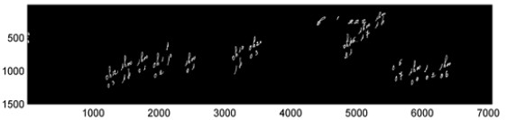 Figure 9 presents an example of the handwritten annotations detected using the proposed method, and Figure 10 shows the monochrome image obtained after eliminating all handwritten annotations identified (notice that some annotations are not identified using the proposed method, but they will be ignored in the following step).