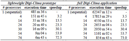 Table 3: Computational efficiency of the distributed implementation of Digi-Clima in Ourgrid