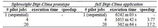 Table 2: Computational efficiency of the grid Digi-Clima implementation in GISELA grid