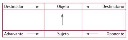 reside en el hecho de que está por entero centrado sobre el objeto del deseo perseguido por el sujeto, y situado, como objeto de comunicación, entre el destinador y el destinatario, estando el deseo del sujeto, por su parte, modulado en proyecciones de adyuvante y oponente (Greimas, 1971, p. 276).