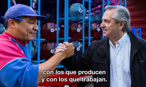 De modo que los propios electores constituyen el término del actante que se beneficia con el triunfo del Frente de Todos. En este sentido, el spot titulado Tu esfuerzo (00:48), cuya circulación remitió a las PASO, resulta indicativo de la posición asignada a un sector de los votantes. El enunciado verbal de Fernández corresponde entonces con un sujeto que se dirige hacia el objeto, y cuyo alcance significaría el inicio de un nuevo modelo de gobierno subsidiario de las necesidades de un destinatario perteneciente a la sociedad civil: