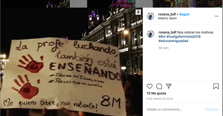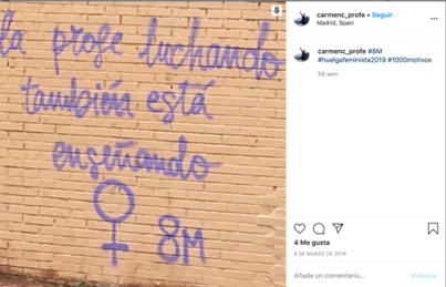 Muchas de las imágenes que han acompañado las manifestaciones de 2019 son selfies y/o retratos etiquetados bajo la etiqueta #huelgafeminista (Figuras 3 y 4).