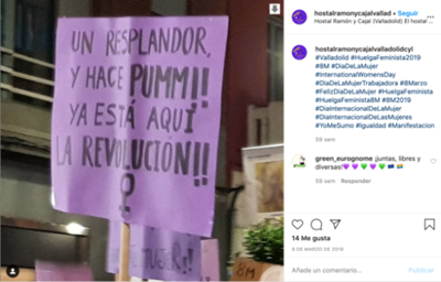 Estas formas de comunicación responden a la lógica de la esfera híbrida física-digital: no se dan exclusivamente online, sino que dialogan y se dan simultáneamente con otras formas offline. Al igual que pasó en otros movimientos, como el 15M (Martín Martín, 2015) y Occupy Wall Street (Milner, 2013), se documenta el uso de cartelería analógica, pósters, pancartas y formas low-tech de producción mediática. El uso de estos elementos en las pancartas del 8M pueden indicar, como afirma Dahlgren (2009), que la habilidad para usar otras modalidades de pensamiento y expresión, así como de reapropiación y transformación en estilos no previstos, pueden conducir una participación de mayor implicación en el debate público.
