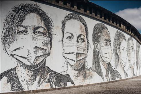 Dado que el frame de la guerra necesita de la presencia de un enemigo, en la narrativa hegemónica de la pandemia de COVID-19 como una guerra ha habido un proceso de construcción del coronavirus como enemigo. Esto ha ocurrido a través de su identificación como un ‘Otro’, como un ‘no-Nosotros’ que es una amenaza. Si las identidades son posicionalidades relacionales, es decir, son construidas mediante el establecimiento de límites y fronteras entre unidades de sentido que son consideradas distintas (Arfuch, 2005; Mouffe, 2007; Moreno Barreneche, 2020b), entonces, en términos narrativos, al coronavirus se le ha dado vida mediante un destaque de los peligros que supone para el bienestar y la normalidad de la humanidad y, a causa de la mediación de la metáfora de la guerra, se lo ha representado como un enemigo al que ‘Nosotros, los humanos’ combatimos. Como se mencionó, el uso de esta metáfora condujo a otros roles e imágenes como ‘el frente de batalla’ y ‘los héroes’, que también pueden verse claramente en creaciones de naturaleza semiótica, como el mural que se ve en la Figura 12.