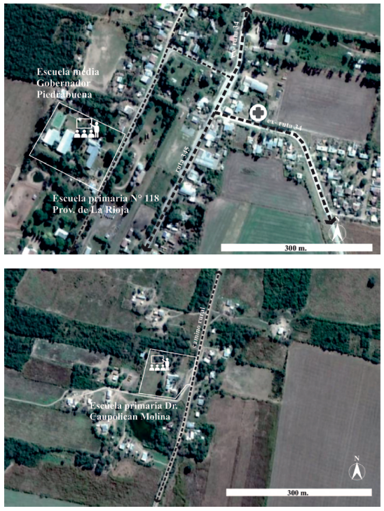 Gobernador Piedrabuena cuenta con escuela primaria y con secundaria completa, que se localizan en terrenos aledaños y cuentan con dos tipos de accesibilidad (figura 4):
