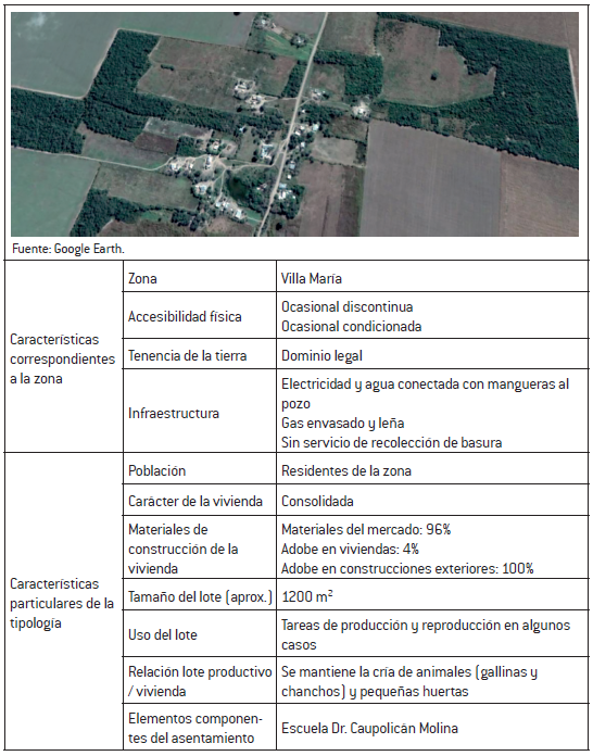 Por otro lado, en Villa María se observa un hábitat rural en caseríos, con una accesibilidad discontinua y condicionada. Esta menor accesibilidad no se corresponde con la preservación de costumbres tradicionales, ya que el avance de las fincas y las fumigaciones condiciona el trabajo en las huertas y la cría de animales de corral. Sin embargo, en algunos casos se mantiene la producción para el autoconsumo. Por otro lado, la preocupación por la continuidad del funcionamiento de la escuela Dr. Caupolicán Molina, que depende de la cantidad de alumnos, aumenta la vulnerabilidad de la zona, ya que el cierre de la escuela podría significar la desterritorialización de esta población.