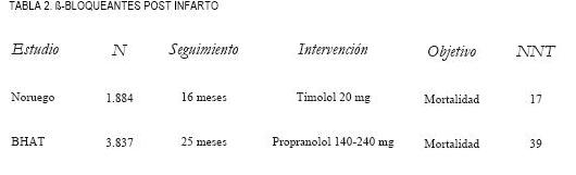 En 1981 el estudio noruego (5) realizado en pacientes post IAM mostró que el timolol reducía la mortalidad, lo que luego también se observaría con propranolol (BHAT)(6) y con atenolol (ISIS-1)(7), en este último caso administrado durante siete días en la fase aguda del IAM. A partir de estos estudios se estableció la necesidad de indicar ß-bloqueantes a todos los pacientes con IAM, excepto que tengan contraindicaciones para ello (tabla 2).