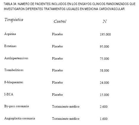 Los ensayos clínicos randomizados destinados a evaluar dispositivos tecnológicos, liderados por las empresas que los comercializan, habitualmente incluyen pocos pacientes y emplean variables de resultado combinadas, las que no permiten conocer el impacto de estos dispositivos sobre la mortalidad. Para ilustrar este concepto, en la tabla 34 se puede apreciar la marcada diferencia entre la cantidad de pacientes incluidos en ensayos clínicos randomizados que evaluaron diversas terapéuticas médicas contra placebo y los que evaluaron el by-pass y la ATC en relación con el tratamiento médico (tabla 34).