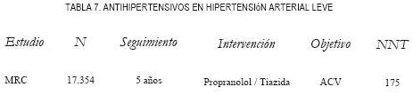 En 1985 el estudio británico del Medical Research Council fue el primer ensayo clínico randomizado con número adecuado de pacientes que mostró que los antihipertensivos reducían la incidencia de accidente cerebrovascular (ACV) en hipertensos leves (13) (tabla 7). A partir de este estudio pionero una gran cantidad de ensayos clínicos randomizados han evaluado diferentes terapéuticas en la hipertensión arterial leve y moderada.