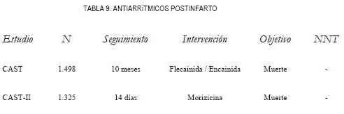 Esta década cerró con los resultados de un estudio que impactó fuertemente en el manejo de las arritmias ventriculares. El estudio CAST mostró que en pacientes con arritmias ventriculares post IAM, los antiarrítmicos flecainida y encainida suprimían las arritmias pero aumentaban la mortalidad (16) (tabla 9).