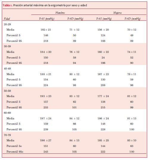 No hay un criterio único y universalmente aceptado para definir un aumento patológico de la PA en el esfuerzo, pero es razonable utilizar tablas con percentiles o el criterio de la American Heart Association.