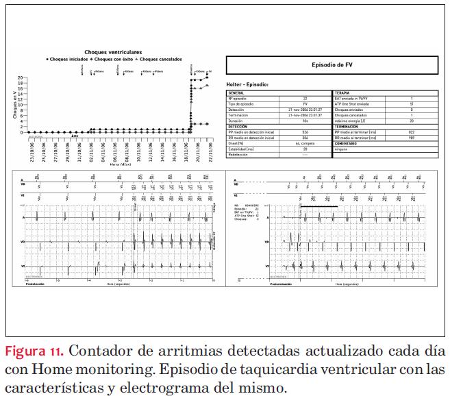 Lazarus A(6) y Nielsen JC(7) recogen la información de una serie muy larga de pacientes que incluye tanto marcapasos como DAI. La media entre el último seguimiento presencial y el primer evento anómalo transmitido por home monitoring es de 26 días. Suponiendo que estuviera programada la siguiente revisión a los 4-6 meses, la ganancia en días para resolver y remediar el problema es de 90-150 días. La mayoría de los eventos transmitidos (86%)(8) correspondían a alarmas médicas del tipo de arritmias detectadas (TV o FV) o bajo porcentaje de resincronización ventricular. En los pacientes con DAI, el 50% de las alarmas corresponden a un mal funcionamiento del dispositivo.