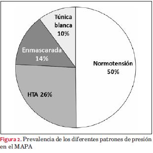 El registro invasivo en individuos hospitalizados había mostrado una elevación de la PA ante la presencia del personal sanitario, a lo que se dio en llamar hipertensión de túnica blanca(29). El MAPA confirmó este fenómeno a nivel ambulatorio, al tiempo que permitió reconocer un nuevo patrón caracterizado por PA normal en consultorio y elevada fuera del mismo, la hipertensión enmascarada(30).