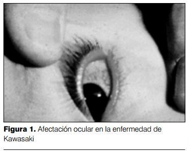 La presentación de un paciente en la emergencia con "ojo rojo", fiebre prolongada y erupción cutánea, puede ser debida a diferentes causas (45). Tener en cuenta las diferentes etiologías puede ayudar al diagnóstico en casos difíciles. El análisis ocular con lámpara de hendidura puede evidenciar uveítis anterior (tabla 4).