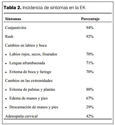 La frecuencia de cada de uno de los síntomas de la EK es variable (45) y se exponen en la tabla 2.