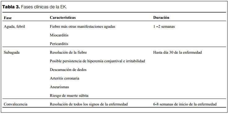 El curso de la EK puede ser dividido en tres fases clínicas: agudo, sub-agudo y convalecencia (tabla 3).