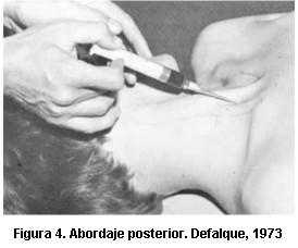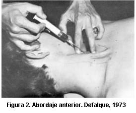 Tradicionalmente, la cateterización de la VYI se ha realizado teniendo en cuenta los reperes anatómicos descritos, particularmente en relación al músculo ECM (8). La primera descripción del acceso percutáneo en cuidados críticos data de 1966 (9). Posteriormente, varios autores publicaron técnicas para su abordaje por reperes anatómicos y distinguimos: el abordaje anterior (figura 2) (10); el central, entre los haces esternal y clavicular del ECM (figura 3) (11); y el posterior (figura 4) (12).