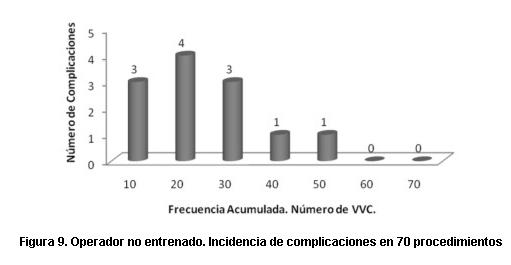 Respecto a los operadores no expertos, la comparación con trabajos anteriores que incluye el uso del ecógrafo es dificultosa porque la mayoría de los trabajos prospectivos fueron realizados por operadores expertos en VVC. El estudio de este tema en operadores en entrenamiento es una de las innovaciones de nuestro trabajo.