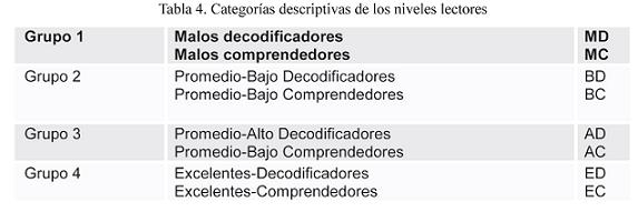 Se establecen perfiles lectores específicos de acuerdo a sus diferentes componentes y se interpretan en el marco de los estudios de la contribución de la decodificación a la comprensión lectora.