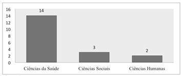 Em relação à área temática dos periódicos, verificou-se predomínio das publicações em revistas da área das Ciências da Saúde, seguida das Ciências Sociais Aplicadas e das Ciências Humanas, conforme a Figura 2.