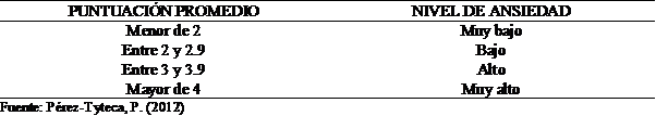 El baremo, con el cual se trabajó que se presenta en la Tabla 1, fue elaborado por Pérez-Tyteca (2012).