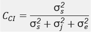 Los aspectos más importantes para aconsejar el uso del CCI en la investigación psicológica son el hecho de que considera el error de medición necesario para poder controlar el sesgo (Camacho-Sandoval, 2008) y la variabilidad intra e inter sujeto (Hazra & Gogtay, 2016). Lo cual muestra sus beneficios en comparación con coeficientes como Pearson o Spearman (Esquivel et al., 2006). Al respecto, Abad, Olea, Ponsoda y García (2011) señalan que al descomponer la variabilidad de los datos en función de las fuentes de error se estiman los correspondientes componentes de la varianza, estos elementos refieren a una estimación de la variabilidad atribuida a los sujetos, ítems y la residual. Por lo tanto, el cálculo del CCI constituye una estimación más precisa y menos sesgada. Asimismo, en términos de componentes de varianza el CCI se obtiene de la siguiente manera: f2