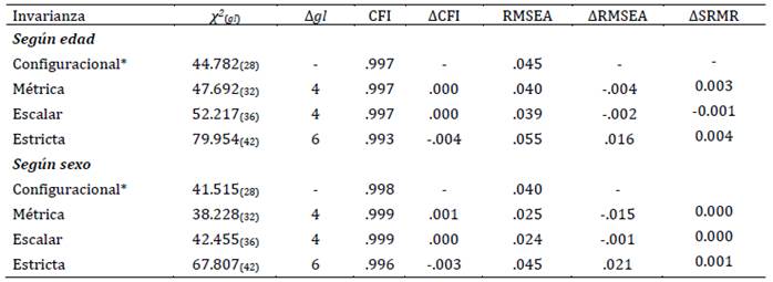 Asimismo, se pudo establecer la invarianza factorial de la medida según edad y sexo (Modelo 4), lo que indica que la ESPU no introduce sesgos en la medición de este atributo en universitarios peruanos (Byrne, 2008). Al corroborarse la invarianza configuracional, métrica, escalar y estricta, esto implica que la estructura interna es solvente, que los ítems miden el factor en el cual están relacionados y que la fuerza de las relaciones entre los ítems o factores y el constructo es constante tanto por edad como por sexo (Putnick & Bornstein, 2016). En suma, la invarianza en estos cuatro niveles sugiere que el instrumento de medición es válido y confiable para su uso en diferentes grupos o condiciones, ya que mide consistentemente el mismo constructo de manera similar en todos ellos (Svetina et al., 2020).