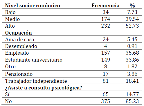 Se contó con 440 participantes, todos colombianos, siendo 321 mujeres (72.95 %) y 118 hombres (26.82 % mujeres), con edades entre los 18 y los 81 años (M = 37.46; DE = 16.99). El proceso de recolección de datos fue realizado usando muestreo por bola de nieve. En la Tabla 1 se presenta la información de los participantes.