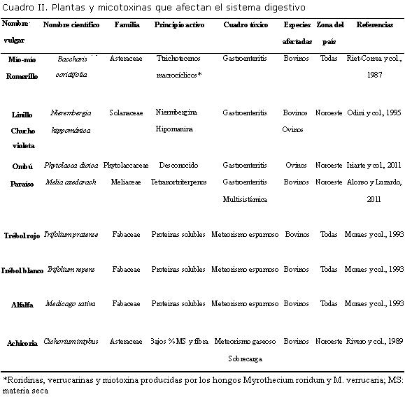 Intoxicaciones por plantas y micotoxinas en rumiantes diagnosticadas en Uruguay