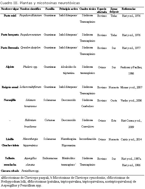 Keywords: Toxic plants, Mycotoxicosis, Ruminants, Uruguay