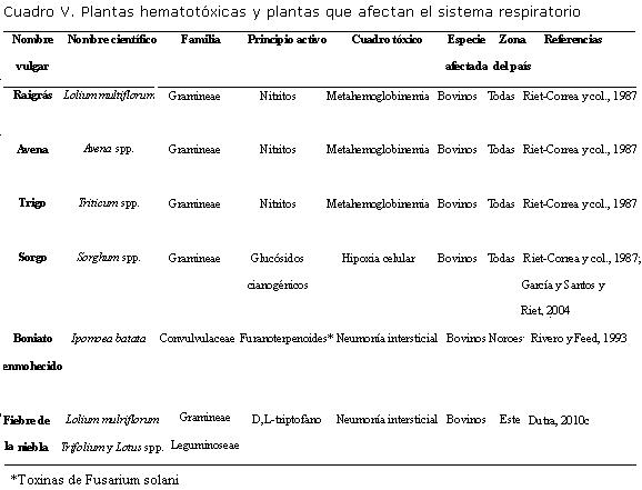 63. Rivero R, Riet-Correa F, Dutra F, Matto C. (2011a). Toxic Plants and Mycotoxins Affecting Cattle and Sheep in Uruguay. En: F. riet-Correa, J. Pfister, A.L. Schild and T.L. Wierenga. Poisoning by Plants, Mycotoxins and Related Toxins Ed. CAB International pp. 25-34.