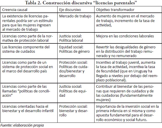 “Lo que pasa es que en realidad en nuestra preocupación estaban otros temas, las mujeres se morían por abortos clandestinos, la violencia de género era una cosa totalmente oculta en el Uruguay y al principio la agenda estuvo concentrada allí (…)El aborto fue realmente subversivo, porque ataca el núcleo duro del patriarcado, esto [las licencias parentales] en realidad, es muy importante, pero viene a solucionar un problema que se da en todo el mundo y que le toca solucionar al Uruguay”(Entrevista, integrante de Cotidiano Mujer, 2015).