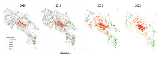 Mapa 1. Conglomerados de juntas y centros de votación con alta y baja participación electoral, 2010-2022
