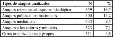 Tabla 4. Distribución de quien fue atacado en la variable referente al espectro ideológico