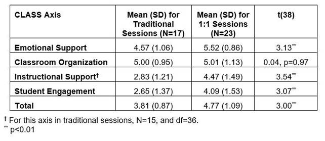 Summary. Findings from this study suggest that during 1:1 sessions, learning was more learner-centered, and the overall teacher-student relationship was more positive than during traditional sessions.