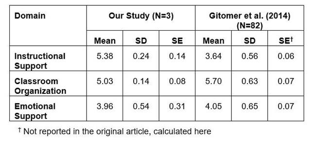 Table 9: Comparing CLASS-S scores between our study (online classes) and Gitomer et al.'s (2014) (traditional classes)