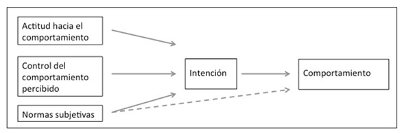 Normas subjetivas: la inclusión de las normas subjetivas genera un mecanismo que permite que el contexto social pueda influir en la aparición de un comportamiento, de manera que las normas subjetivas también predicen las intenciones de la acción.