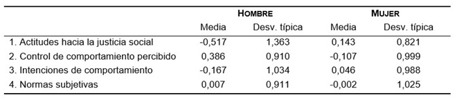 Tabla 7: Puntuaciones medias y desviación típica en los factores en función del género