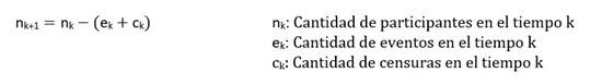 En consecuencia, la relación entre nk y nk+1 (intervalos consecutivos en la variable tiempo) depende de la cantidad de eventos y de censuras (Ducrocq & Gómez, 2000, p. 238-239): ch10