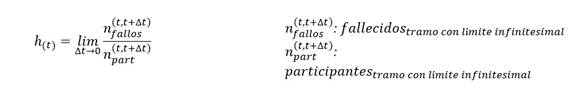 Con el objetivo de proporcionar una idea de la velocidad con que se observa cada nuevo evento (“velocidad de fallecimiento”), se calcula la “tasa de mortalidad instantánea”, “función de fallo”, “función de riesgo” o, genéricamente, función de impacto.