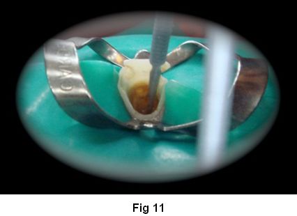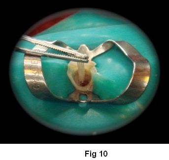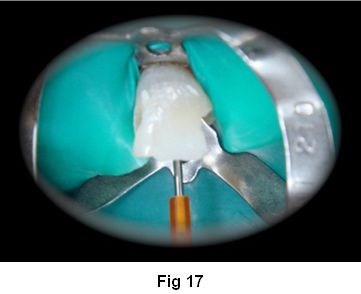 10. Colocación del cemento en el conducto con jeringa (Centrix) para evitar entrampar burbujas de aire (Fig. 17)