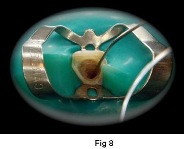 2. Preparación definitiva del conducto con la fresa conformadora correspondiente al poste (Fig. 6 y 7)