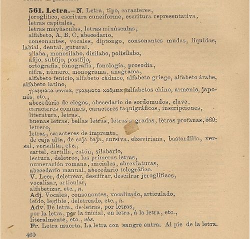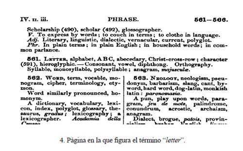 Este concepto se encuentra en el Thesaurus bajo el término Letter, character también en el epígrafe 561 cuyo contenido es como sigue:
