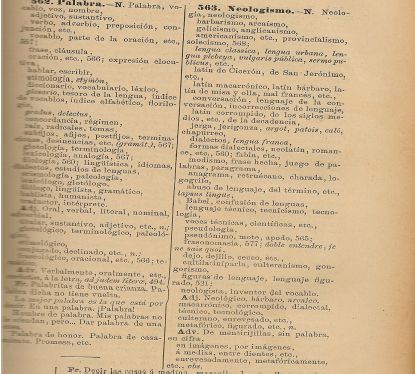 Tal y como se puede comprobar, tanto el tipo de información como la extensión de la misma es más notable en la obra del gaditano. Aprovechemos, asimismo, para comparar el término neologismo / neology que figura en las imágenes para ver la diferente información que ofrecen ambas obras; la correspondencia en la obra de Benot resulta nuevamente más dilatada.